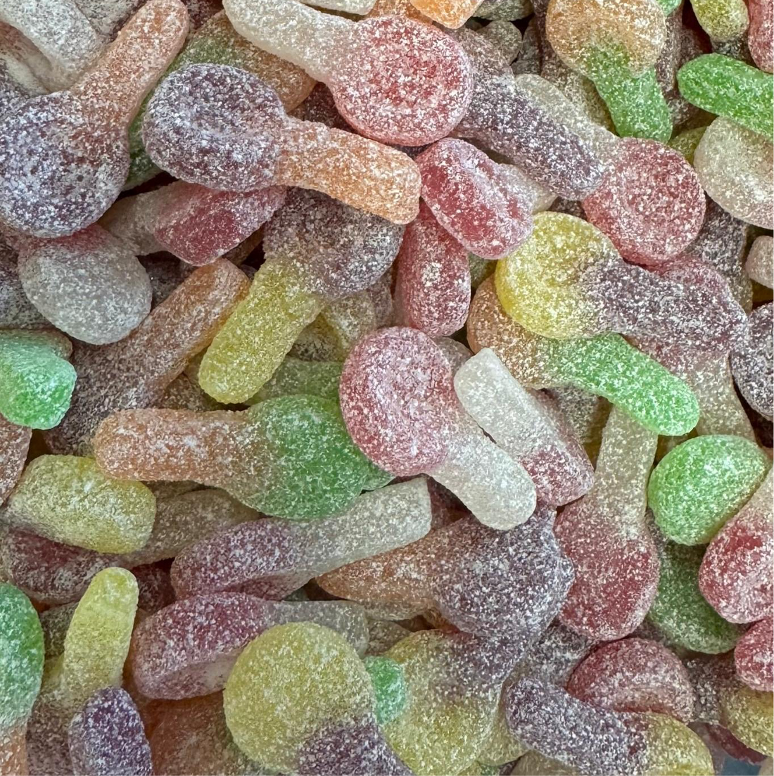 Regenboogjes jumbo (halal) Ingrediënten: Suiker, glucose-fructosestroop, Tarwebloem, water, dextrose, plantaardig vet (kokosnoot), voedingszuur: E330, E296,...