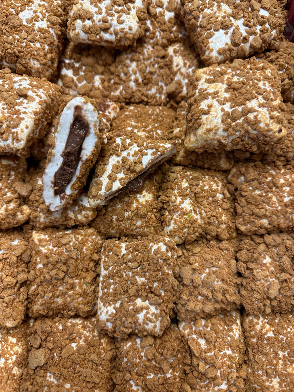 Ingrediënt | Suiker, water, maiszetmeel, glucosestroop, vanille aroma, zuurteregelaar citroenzuur (E330), chocoladevulling: suiker, plantaardige olie, cacaopoeder, lecithine, melkpoeder, magere melkpoeder, hazelnootvulling, aroma versterker, magere melkpoeder, amandelen 3%, amandelstukjes 3% |