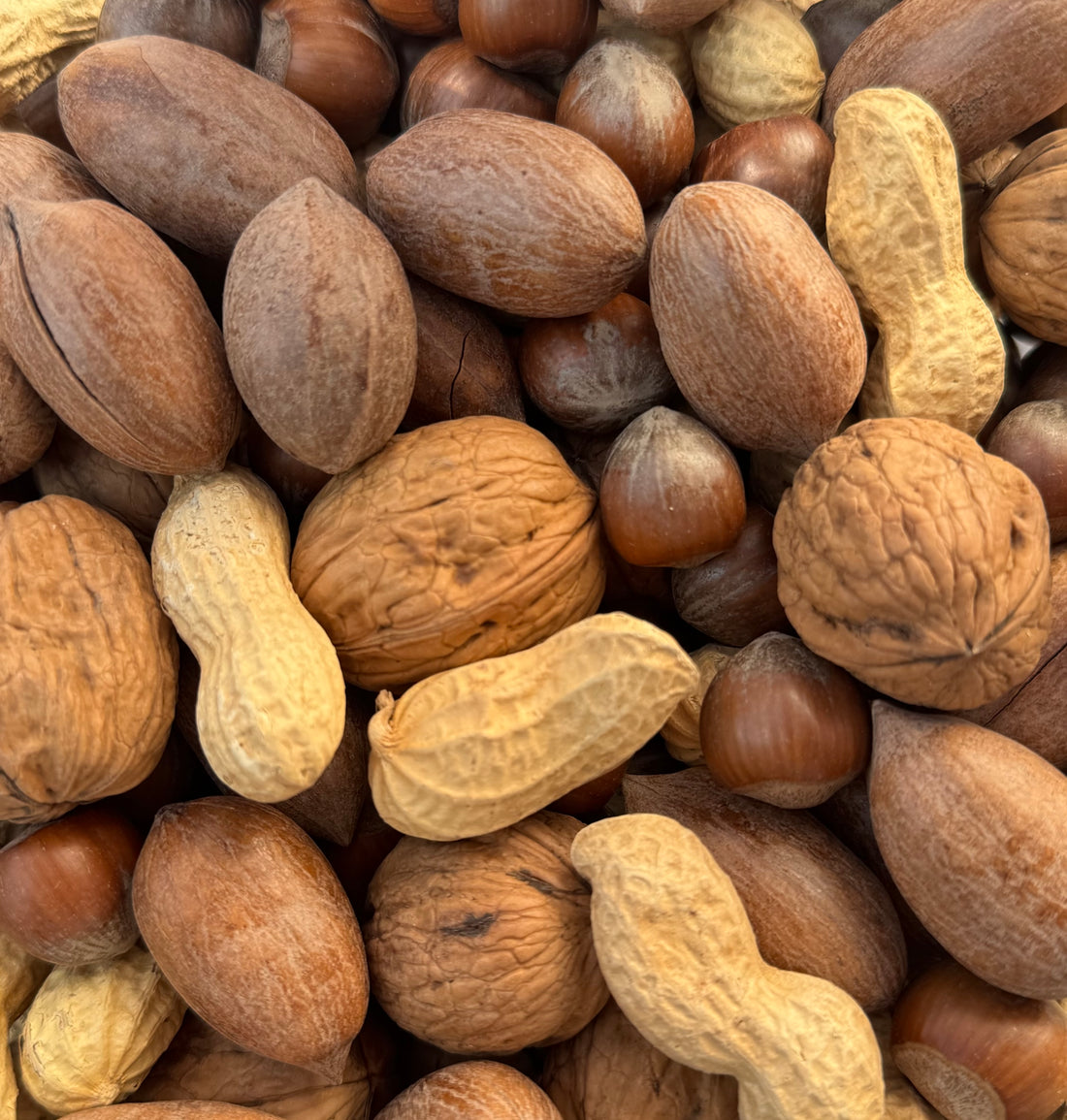 Hazelnoten in dop/Pinda in dop/Pecannoten in dop/Walnoten in dop Energie 2959 kJ/ 717 kcal...